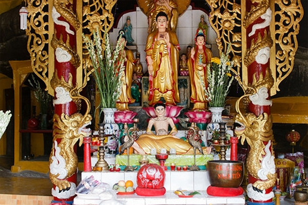 Bàn thờ chính trong chùa Gia Lào