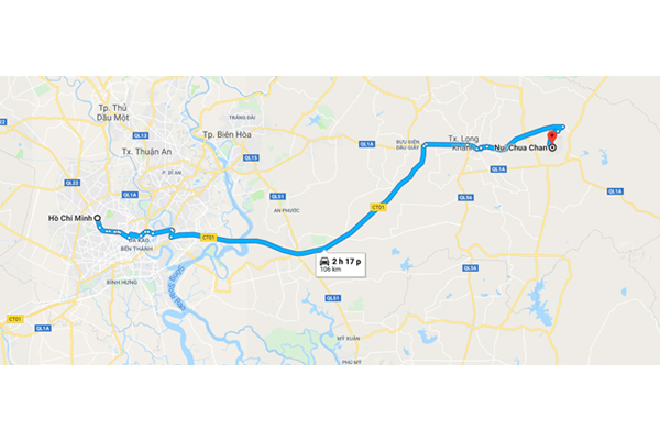 Nằm cách thành phố Hồ Chí Minh hơn 100km về hướng Đông Bắc, du khách sẽ phải mất hơn 2 tiếng đồng hồ đi xe mới tới đây. Sau đây là tuyến đường tới chùa Gia Lào nhanh mà các bạn có thể tham khảo qua: